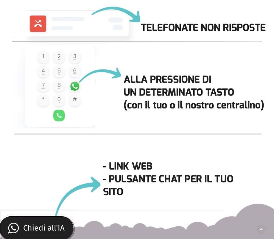 Il chatbot può essere integrato sia per rispondere tramite un pulsante sul tuo sito oppure a telefonate non risposte.