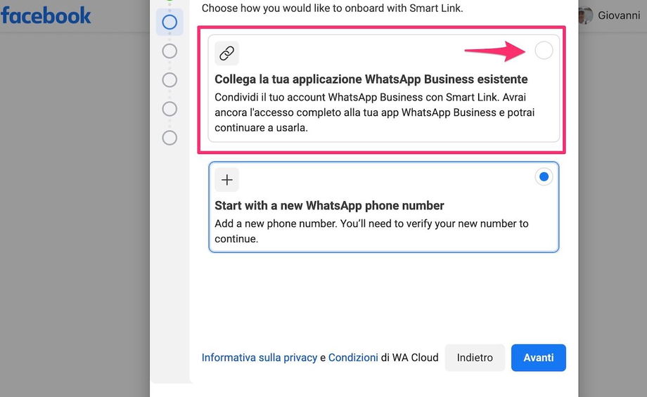 3) Sincronizzare i messaggi sull'app WhatsApp Business e sull'API: